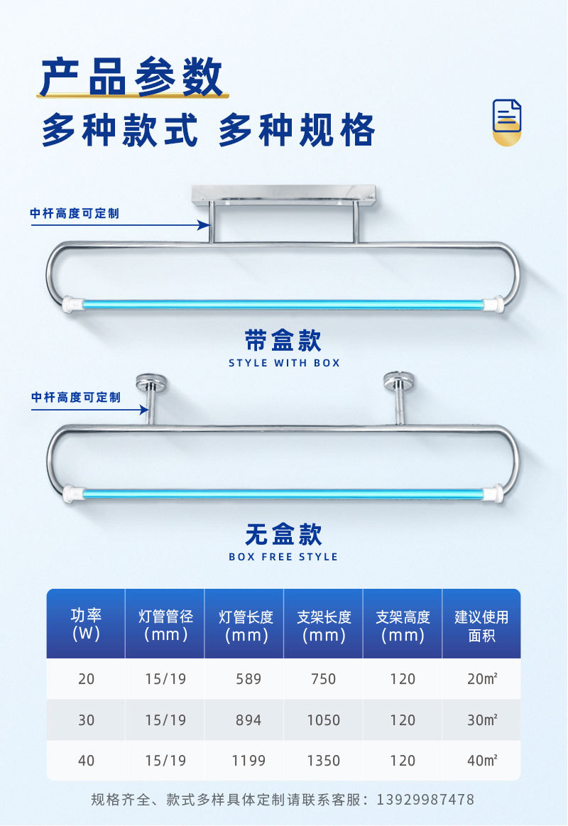 The stainless steel uv-sterilizing lamp food plant. Lights