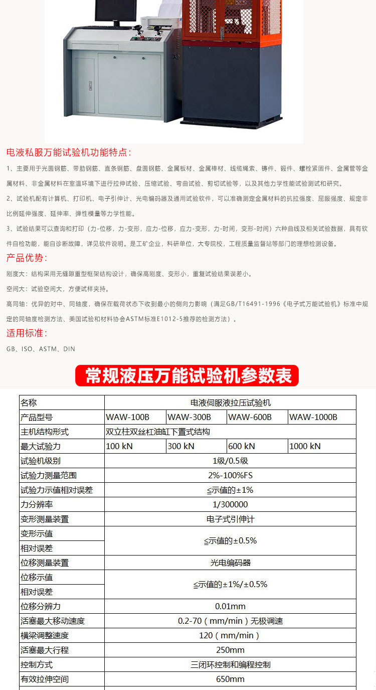 Mechanical performance test detection equipment for various metals and non-metal materials production