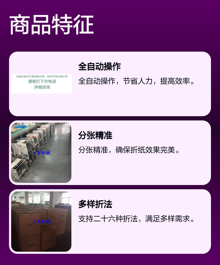 The ze series, the auto-discretion machine, the book origami, the fully automatic folder, the stacke