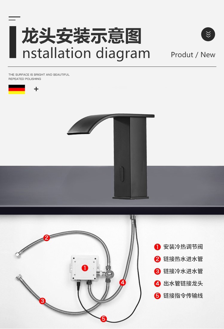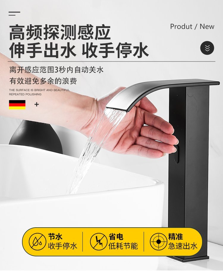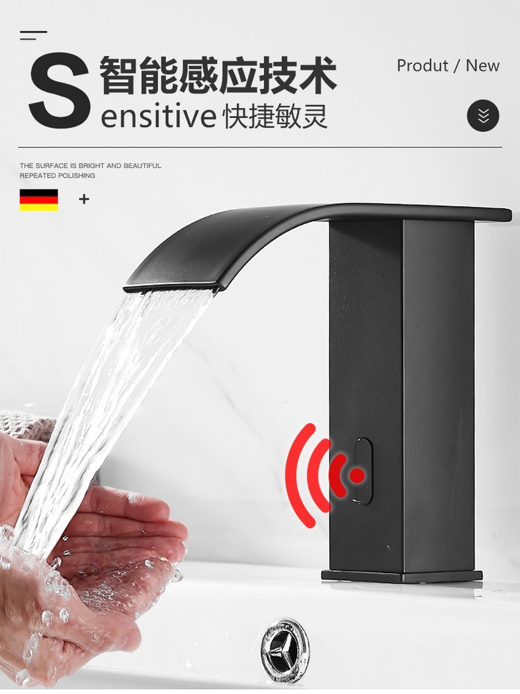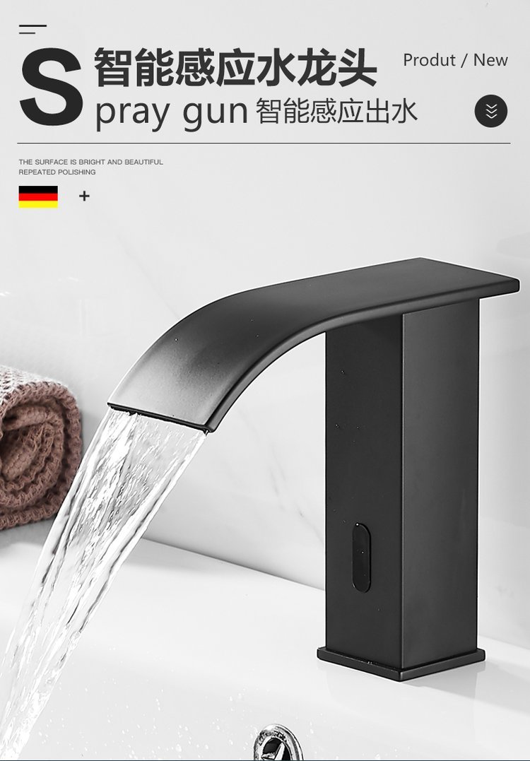 Black intelligence senses full copper in the water tap waterfall cold-hot basin washhouse