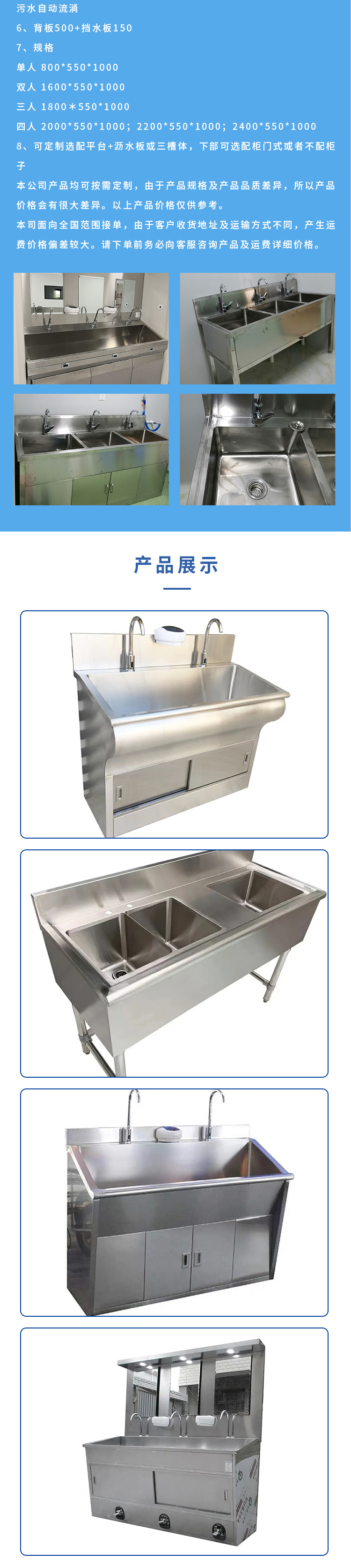 The stainless steel wash pool, customizing the feeling taps, the clean room pool, the sink is solid