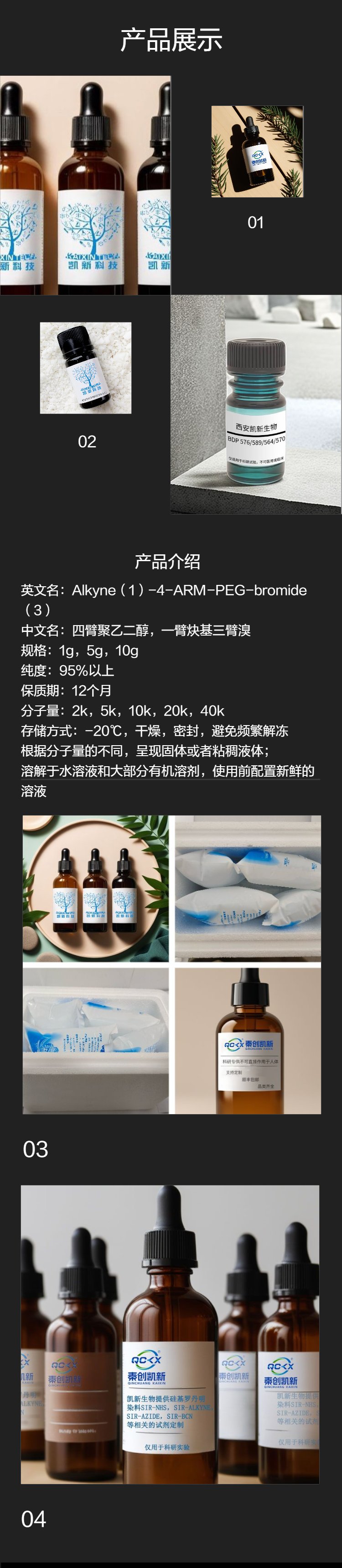 Alkyne (1)-4-arm-peg-bromide (3) four-arm derivatives containing aluminum, bromine tissue