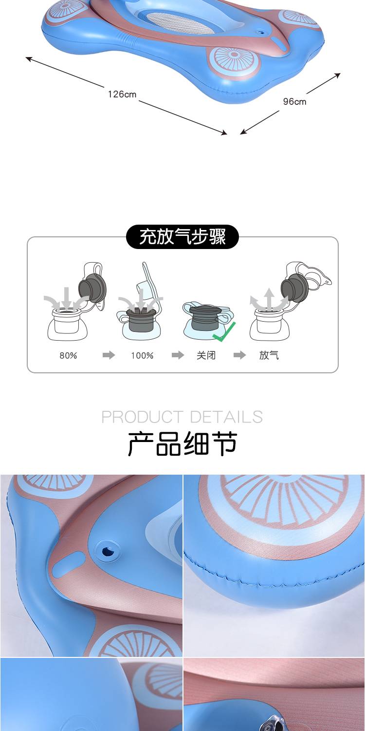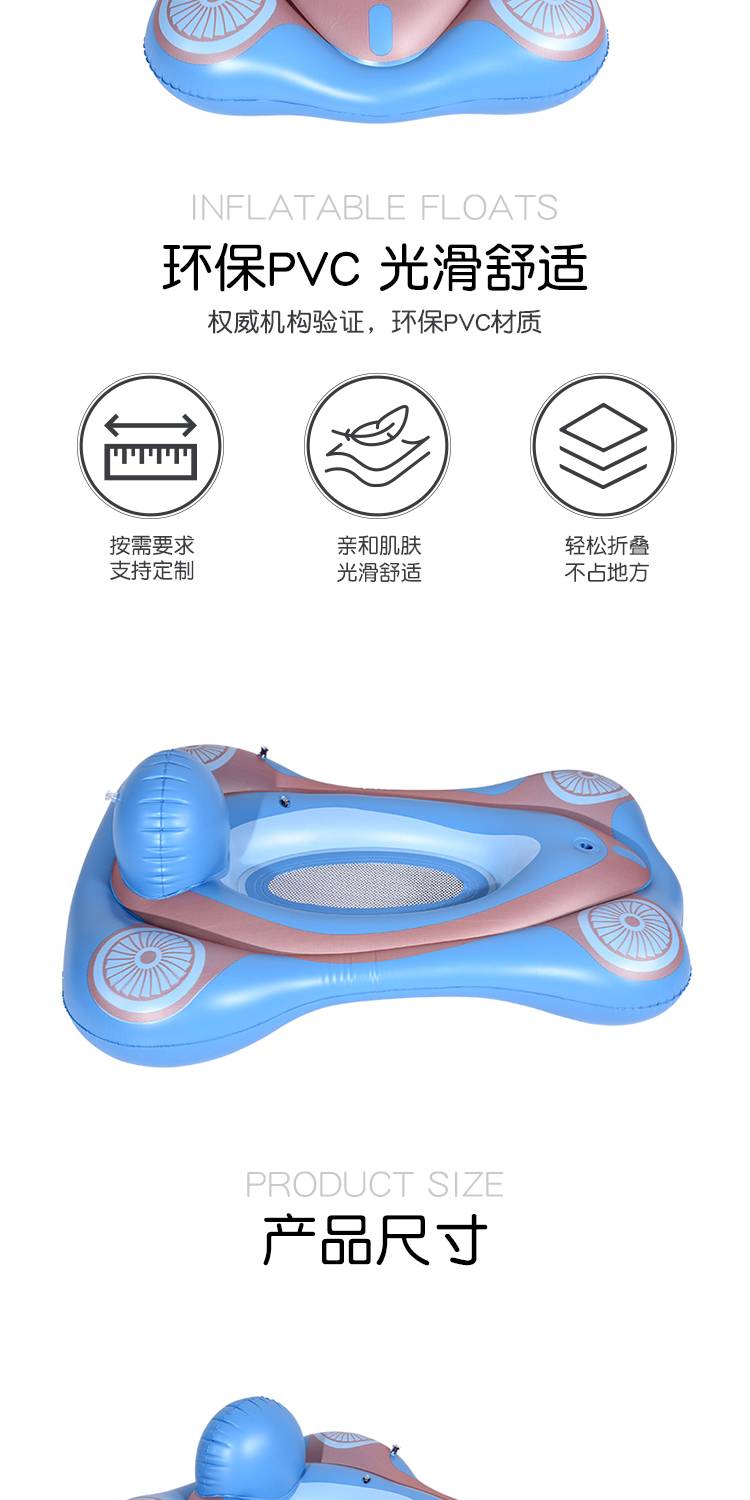 Inflatable floating bed PVC inflatable floating drainage with mesh, inflatable water play hammock, l