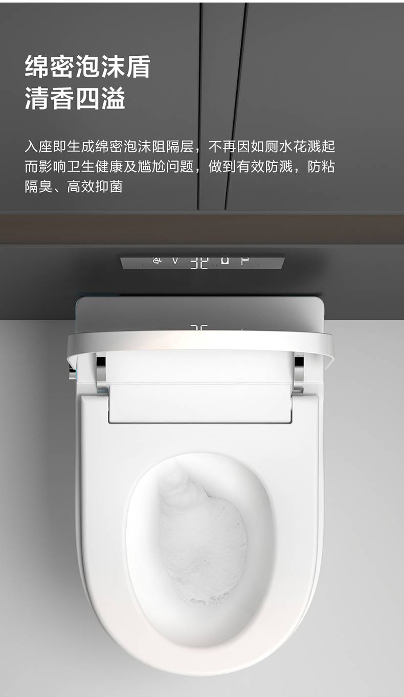 Full self-turning of a single toilet with a domestic foam shield and wall-mounted defecator