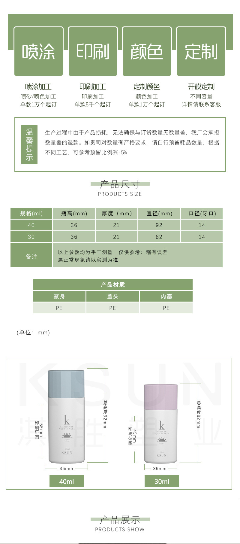 Customized series of hand-masser packagings of pe30ml-separated cream 40ml emulator bottles