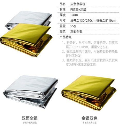 Pet130*210 double-side silver emergency emergency blankets for outdoors to keep the sunscreen blanke