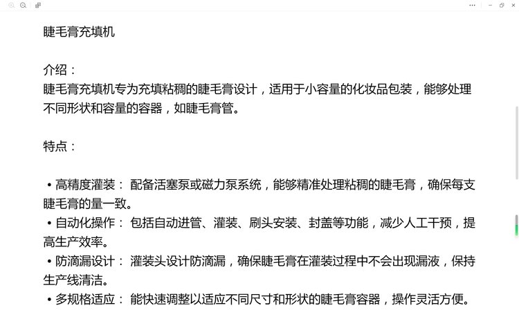 Sunscreen wrapper, mascara filler, sweet sauce loader, flexibility, automation. High