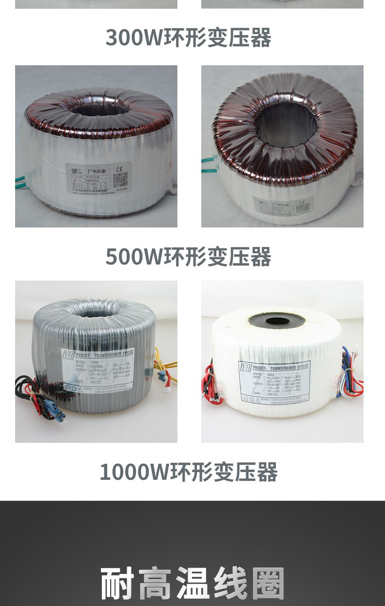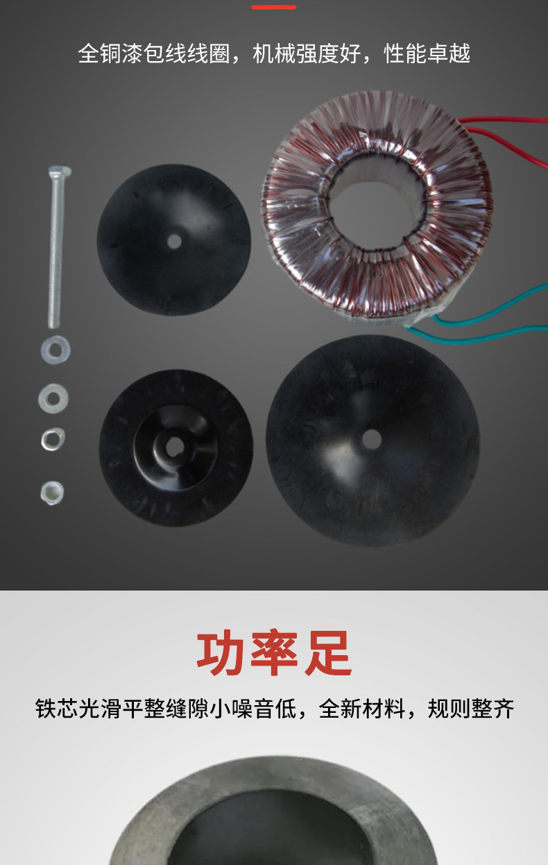 300w copper line ring transformer, encapsulated waterproofing, single-phased voltage. Production