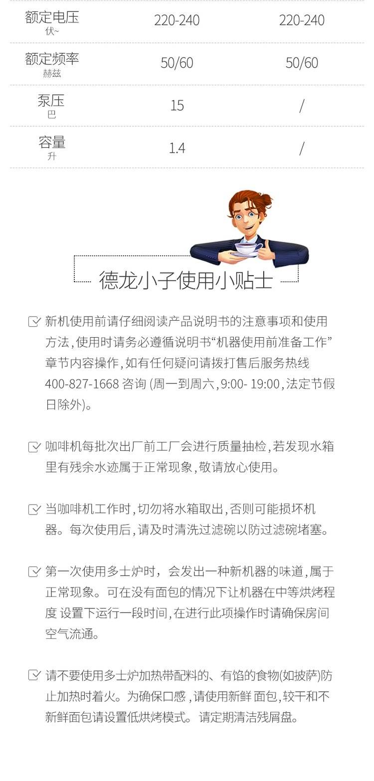 2 sets for the delonghi/drón set of semi-automatic coffee machines + toasters/toasters