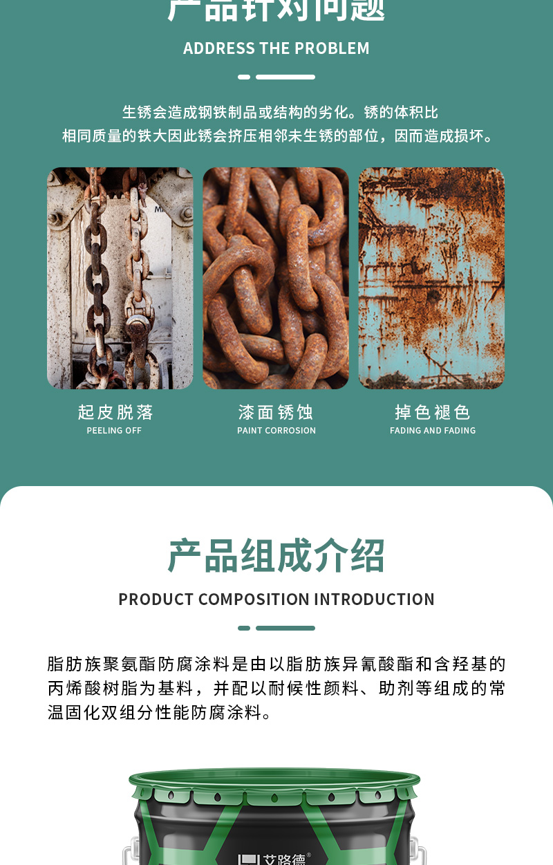 Architectural paints for corrosive coatings of fatty polyurethane, large steel structures, rustproof