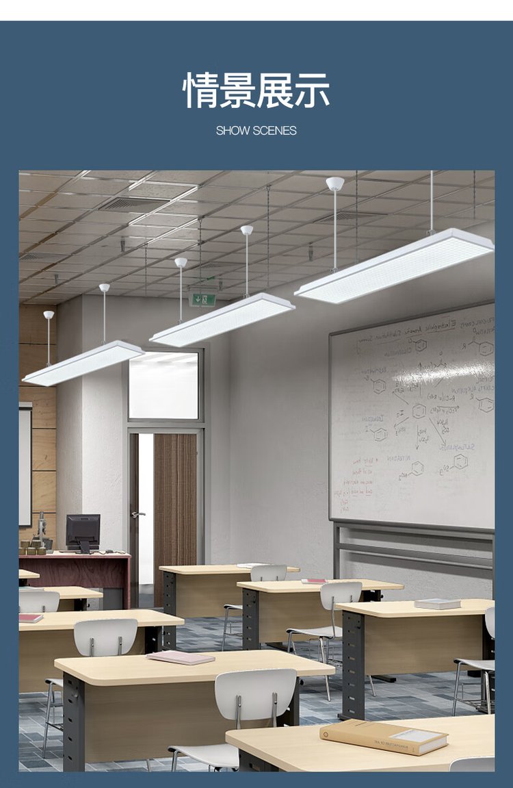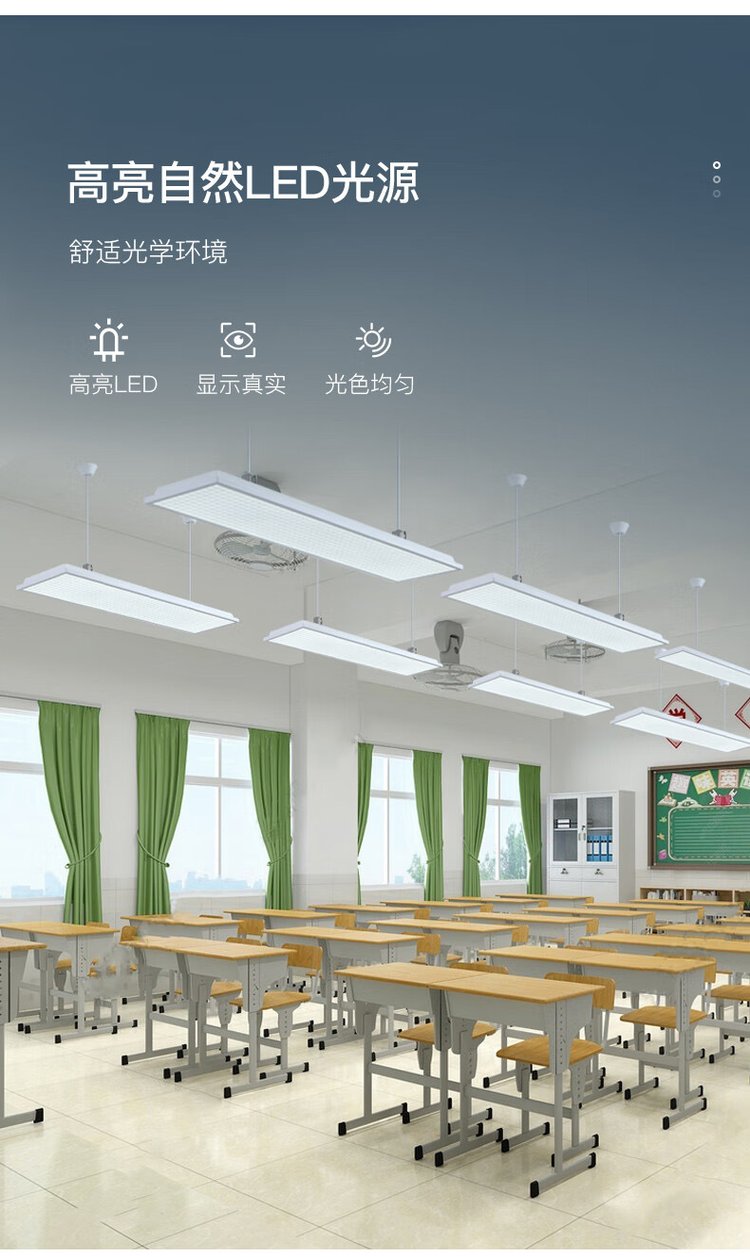 Educative lighting, dizziness-proof chromium glazing lamps, classroom leds, 5,000k dizziness-proof.