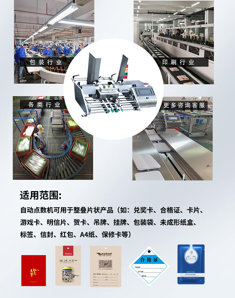 A card count machine with a book warranty card pager card wrapper full-automatic machine