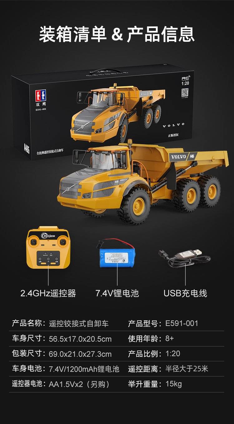 Tanker 573 engineering vehicle electric alloy toy dumper trailer double hawk 590 truck