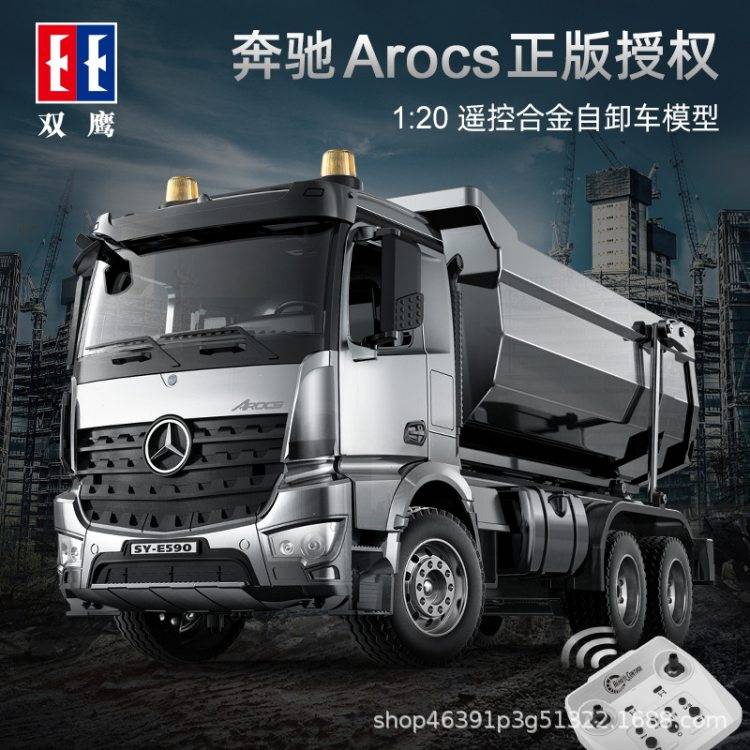 双鹰E590电动遥控工程自卸车翻斗车合金奔驰重型卡车模型儿童玩具