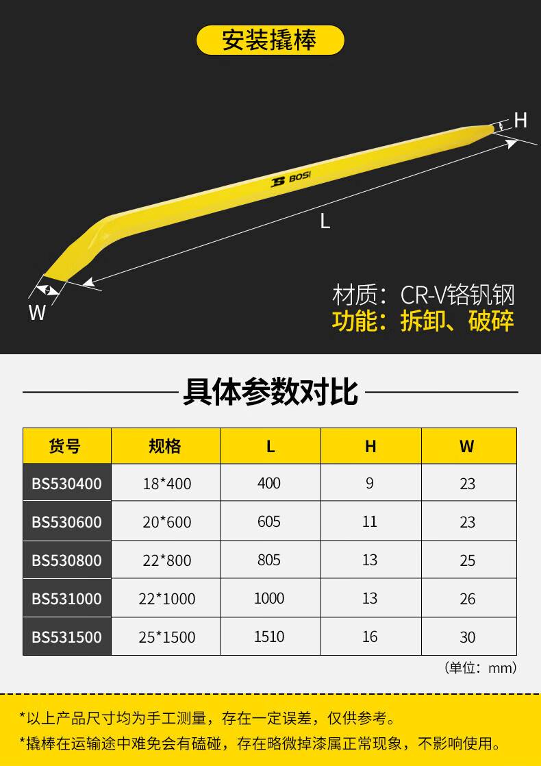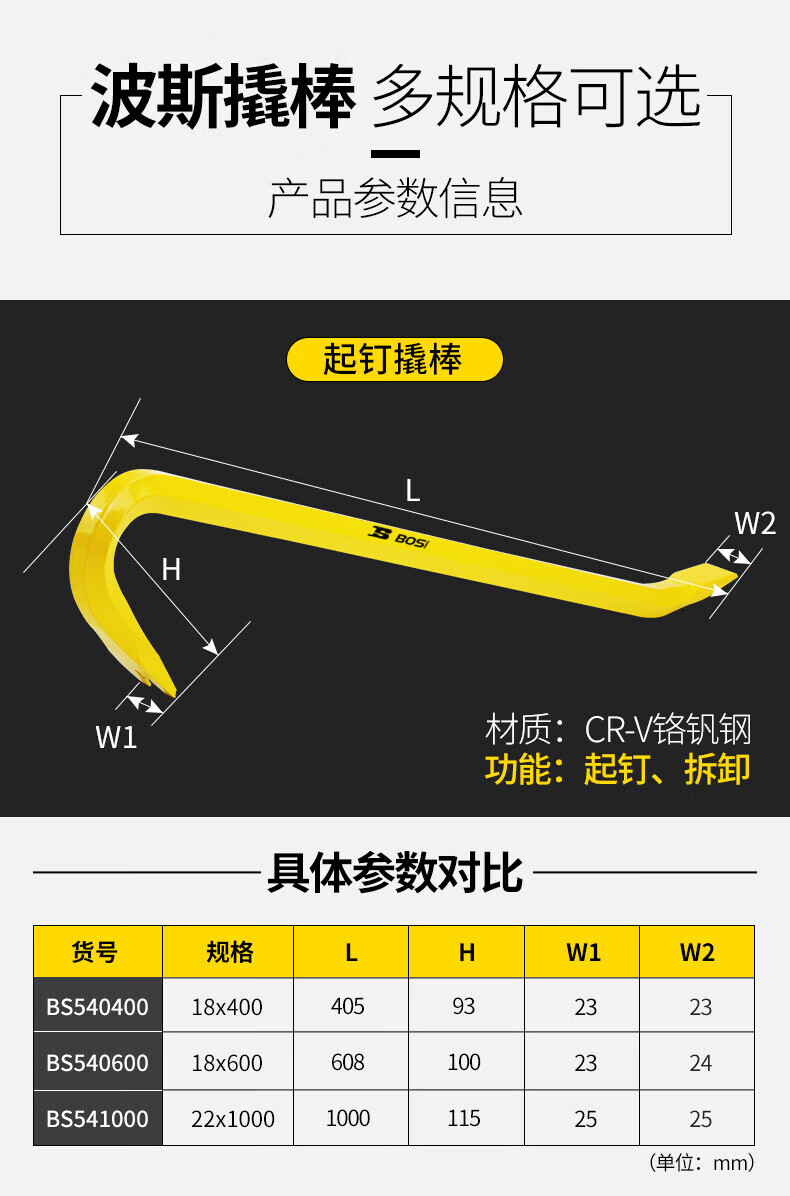 Persia, crowbars, nails, little crowbar lifting tools, stainless steel head, 18*400mm bs530400