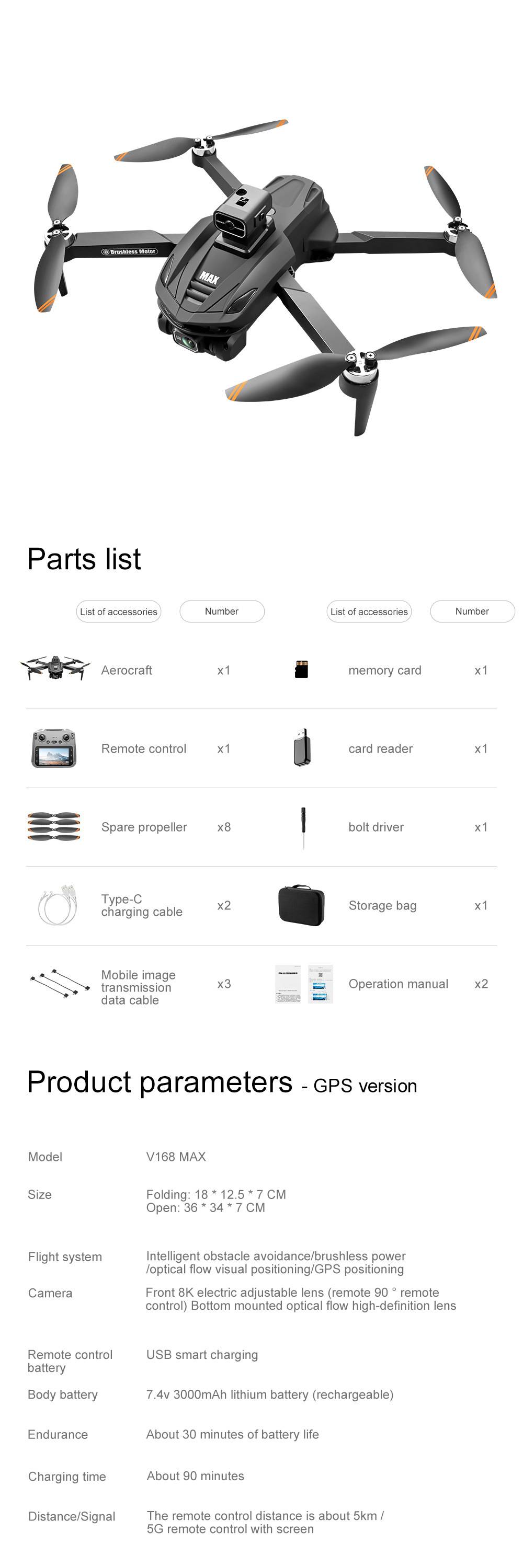 Cross-border v168max drone gps return belt screen camera vehicle folding remotely piloted aircraft f