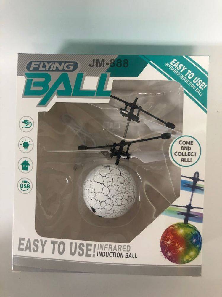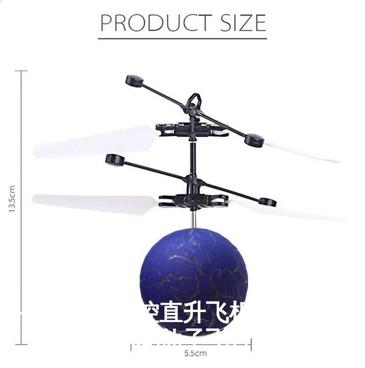 Handprinted remote-controlled helicopter flying a magic crystal ball fairy toy