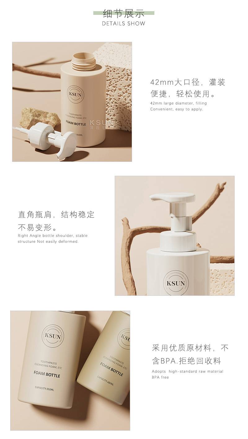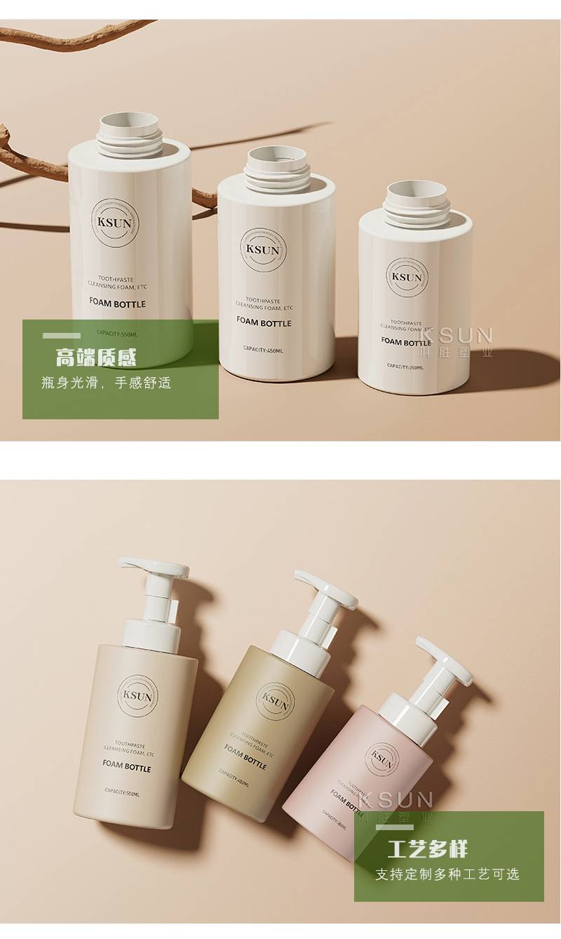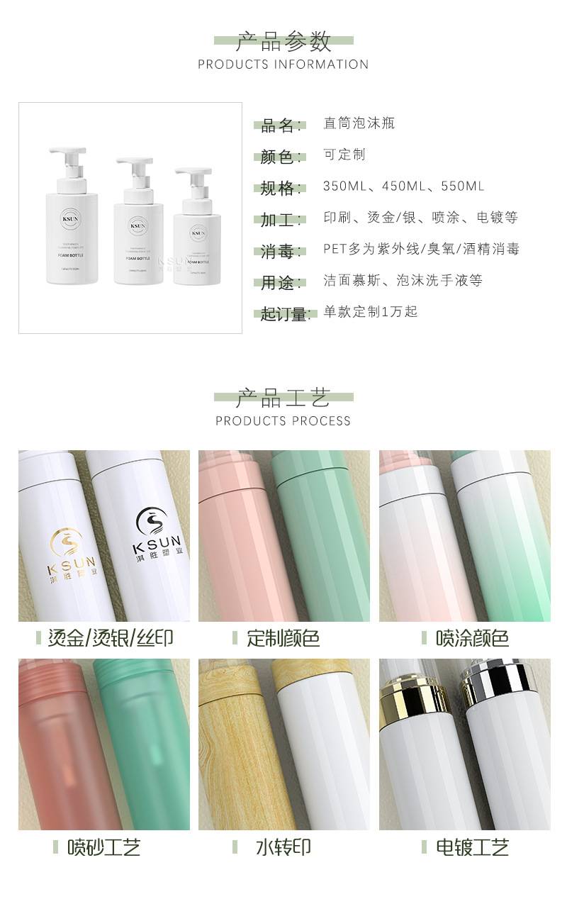 350 ml for flat-shoulder foam cylinders, 550 ml baby bubble-washed hand-washer bottles