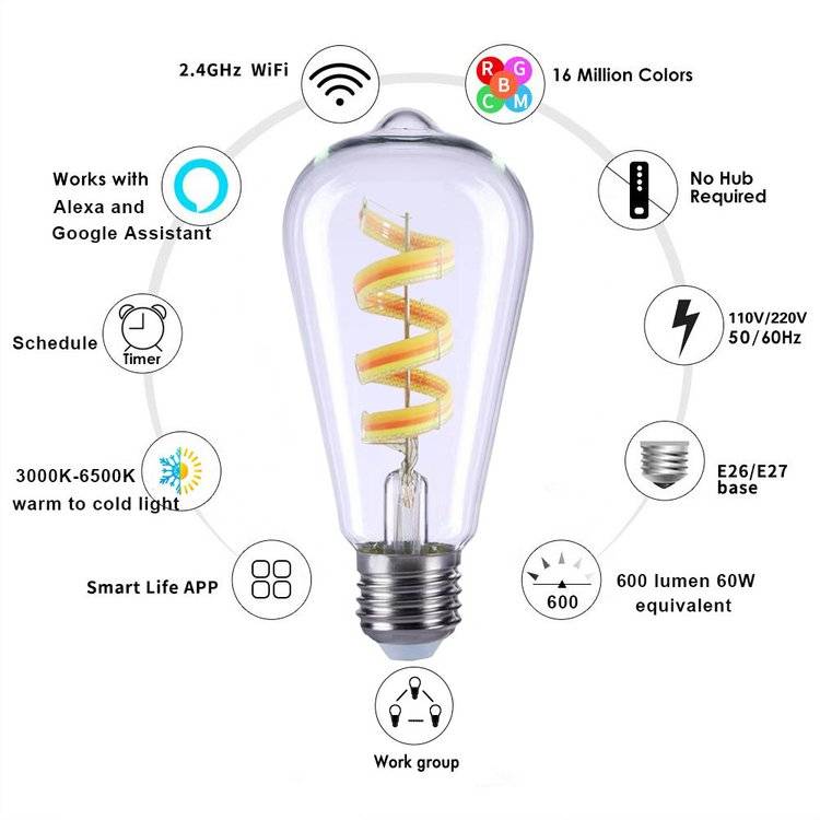 Led tungsten light bulb smartwifi st64 retrospect tungsten light