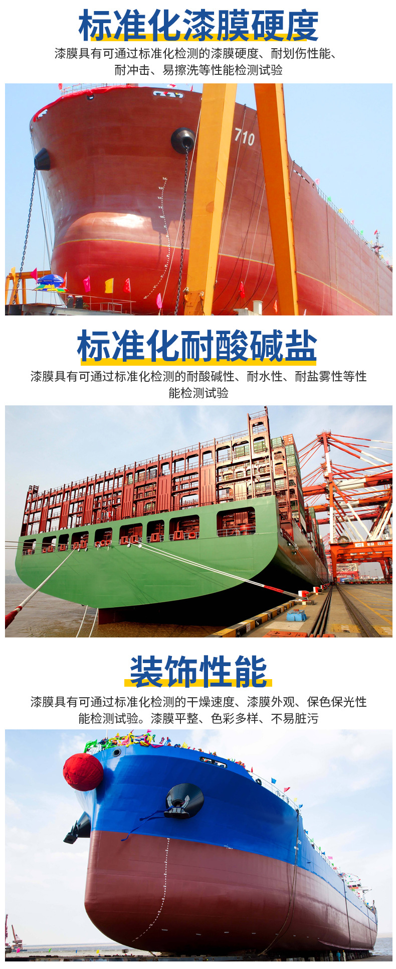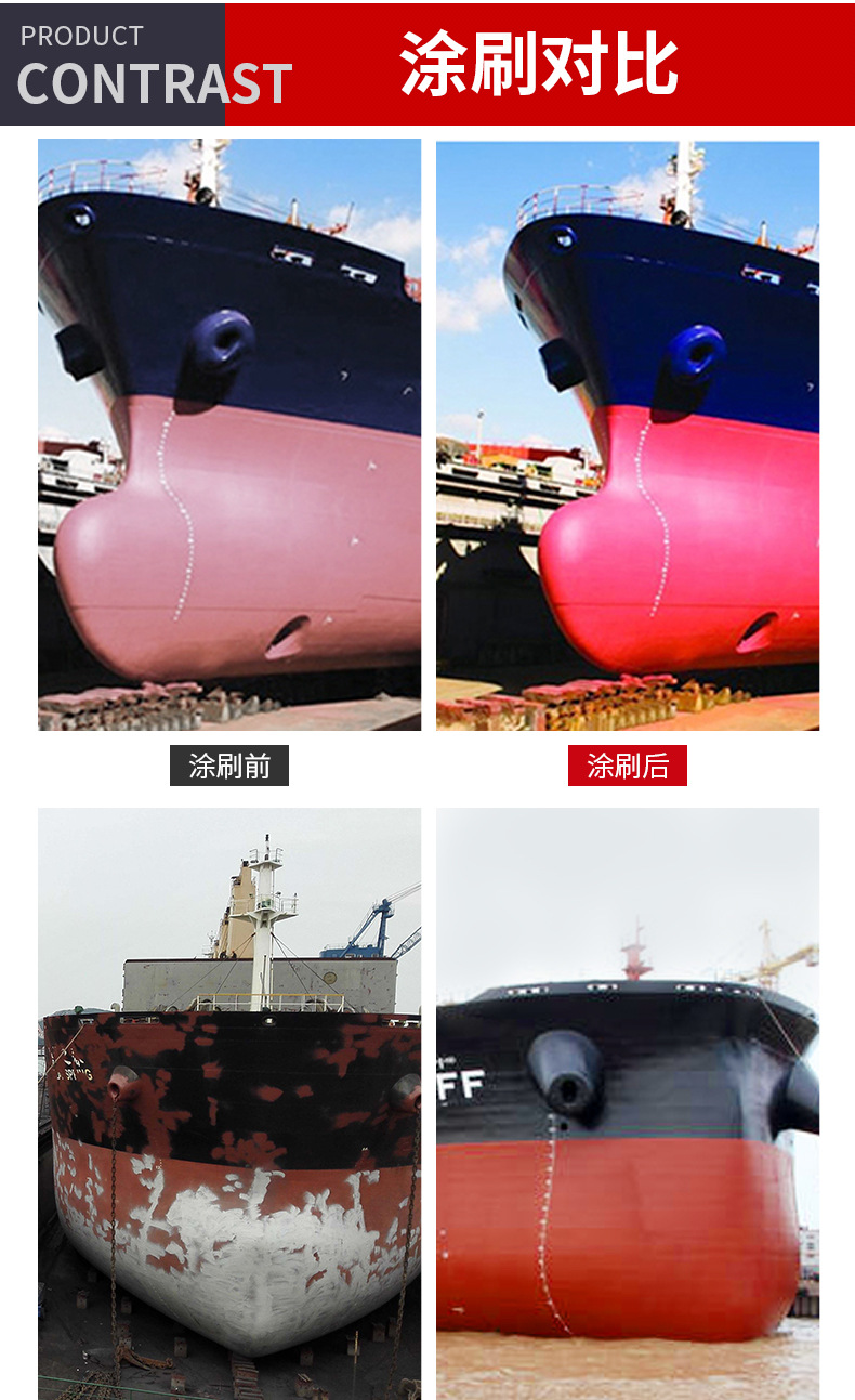 Ship water lines, ship casings, port docks, containers, bridges, chemical equipment, steel components