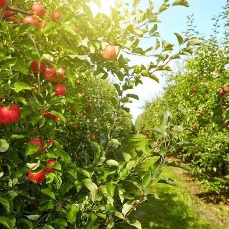 The base sells apple trees, and the landscape greens the crowns. All