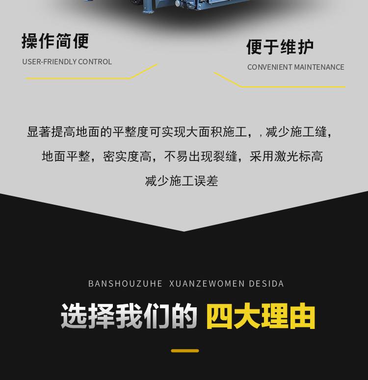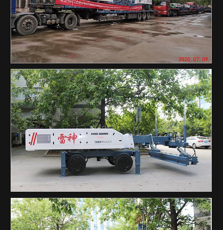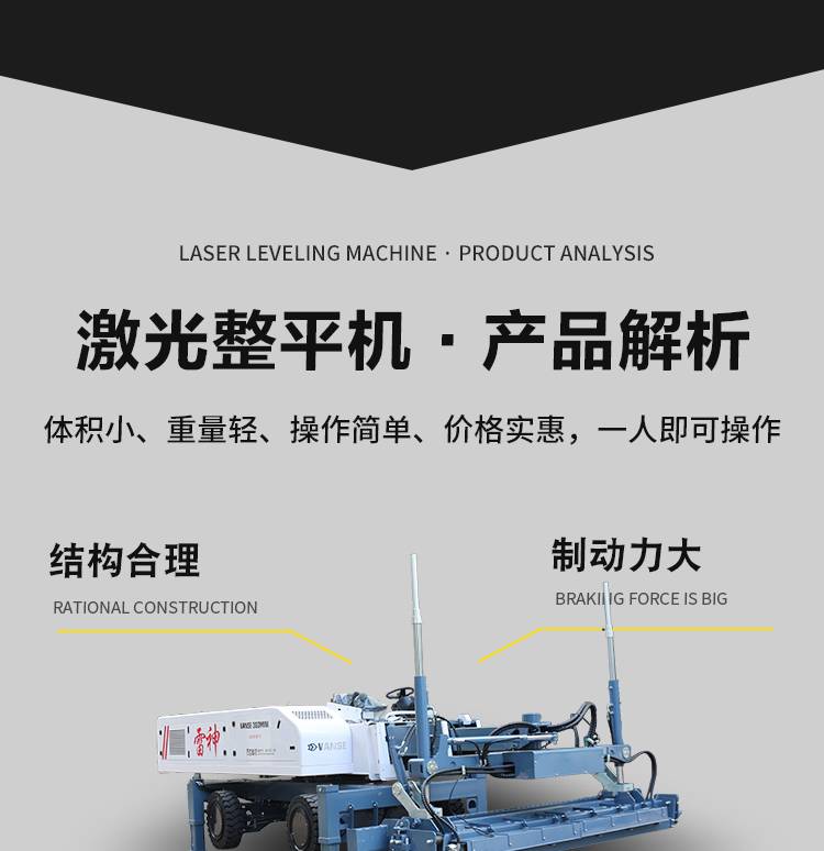 Road level machine, medium stretcher arm laser flattener, concrete stander, worldwide machine