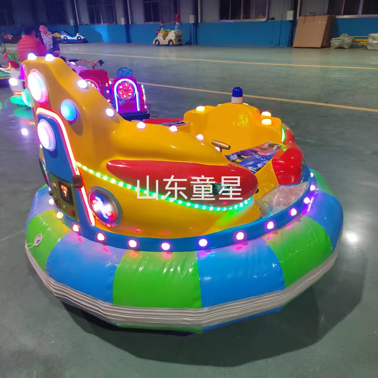 The space warship square luminous skating field, red, blue and green, delivery, children's fun. Sele