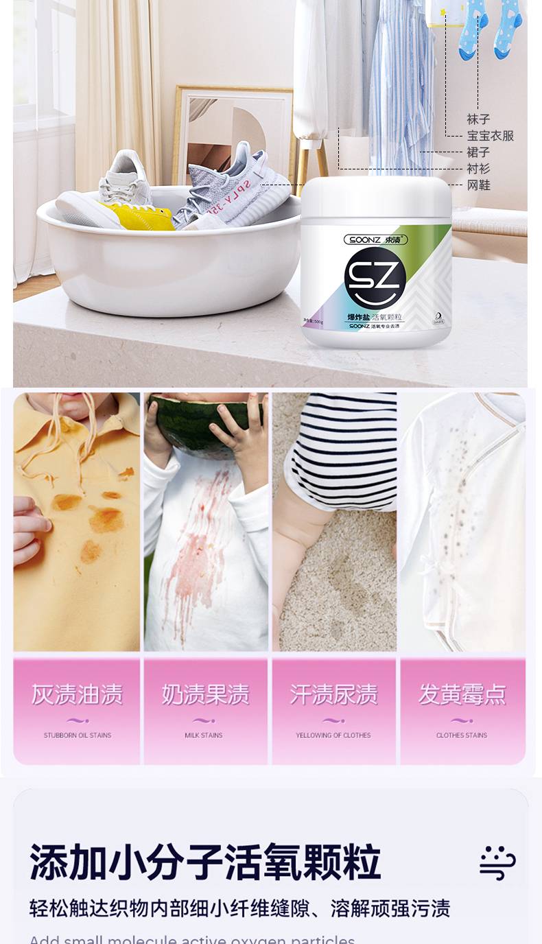 The baby explodes aerobic pollen, 500 g white bleach, and goes to yellow-coloured clothing to defile