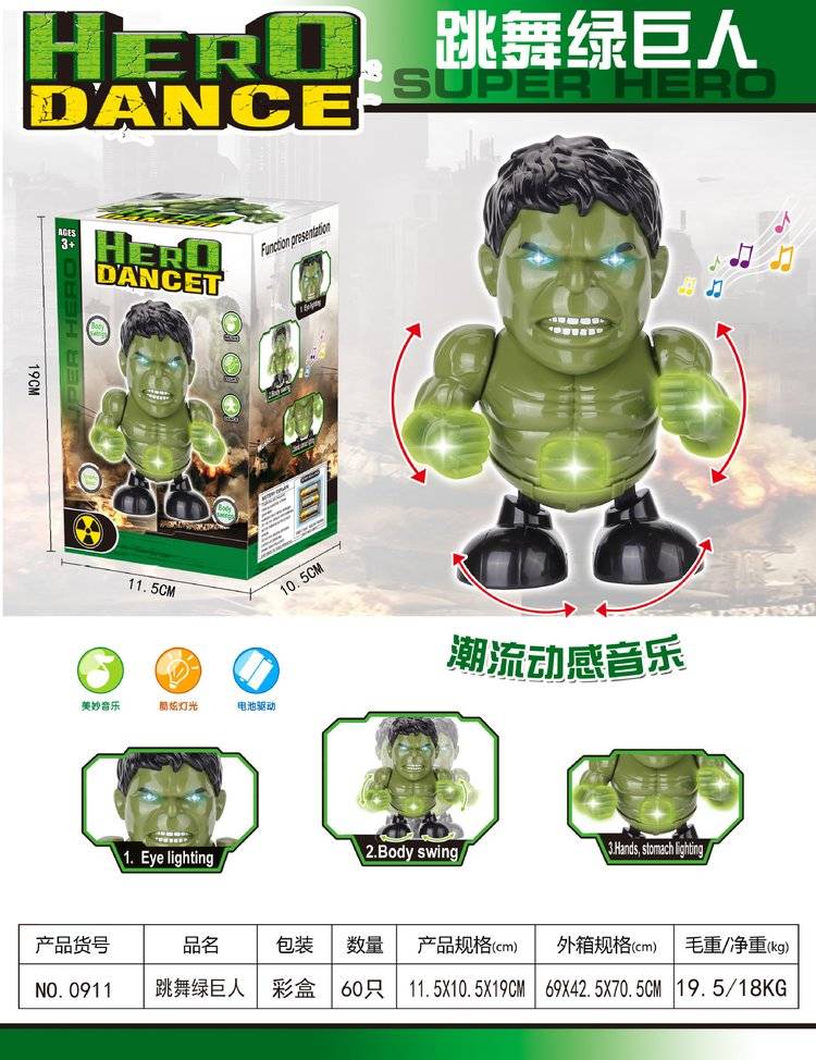 The hulk dancing robots, the iron man's annual gift, the electric walking hand toy