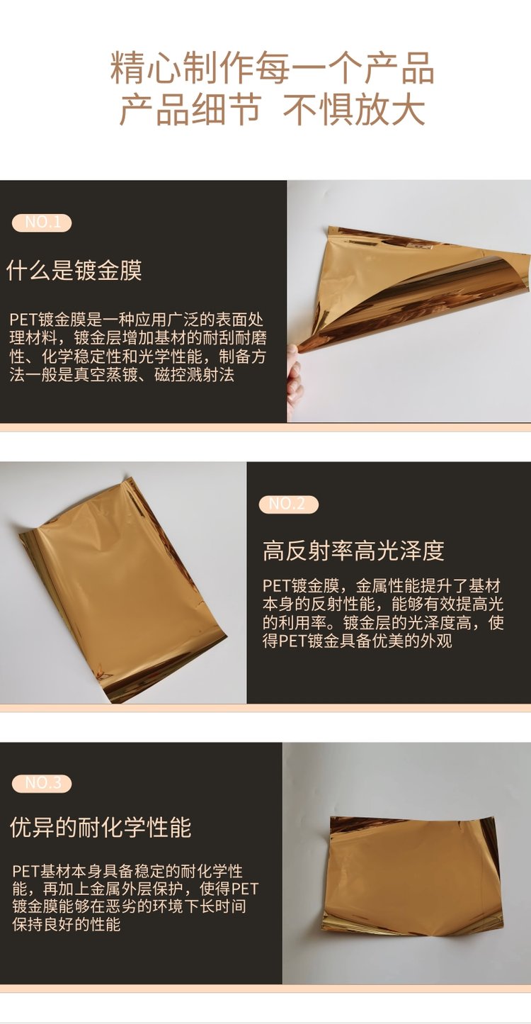 Pet double-sided gold reflecting film for solar cell optical instruments and electronic touch screen