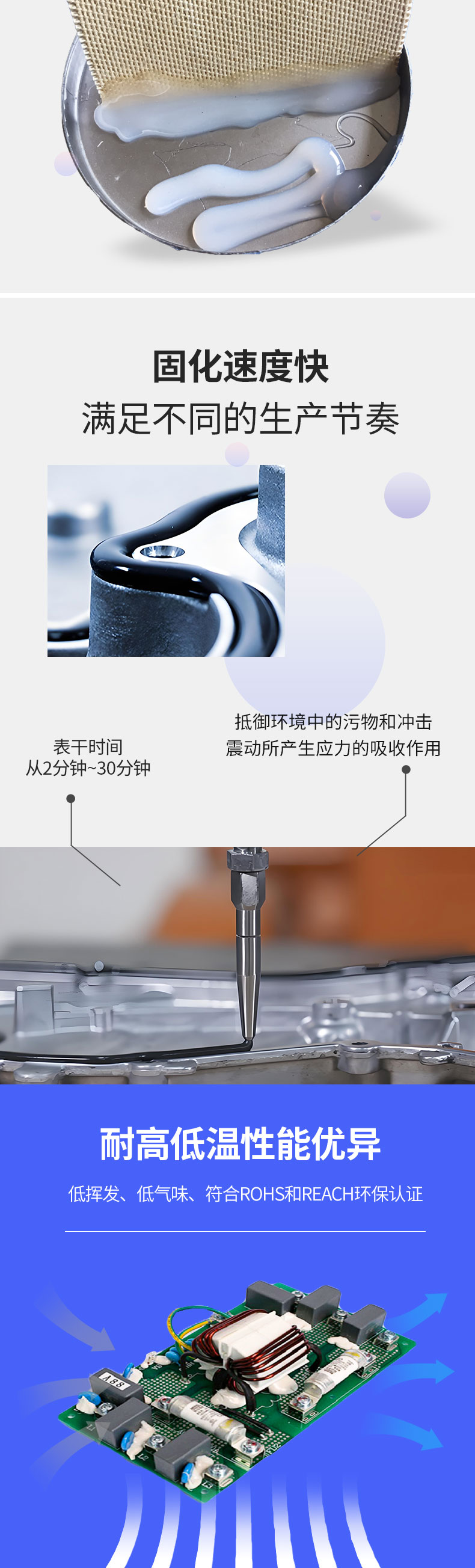 Led lamps, car lights, domestic appliances, engineering machinery, wiring plank components adhesived, control block border seals, beam seals, french seals, sensor seals, holes in holes, circuit plate three coatings, car electronics