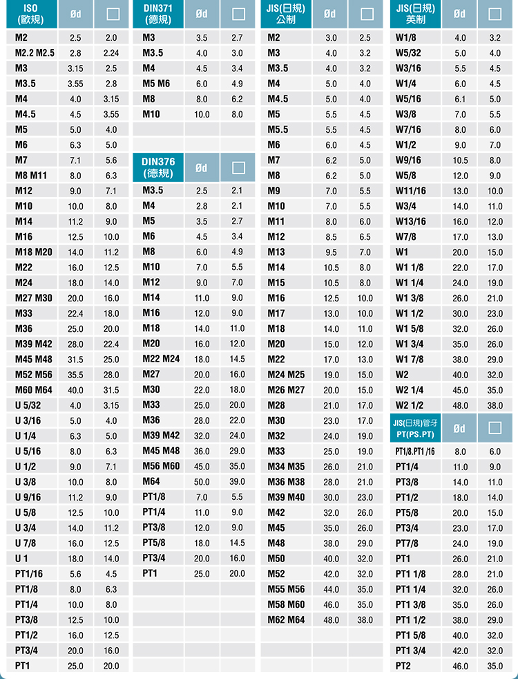 TC312M2~M14JIS TC820M6~M24JIS TC1433M14~M36J