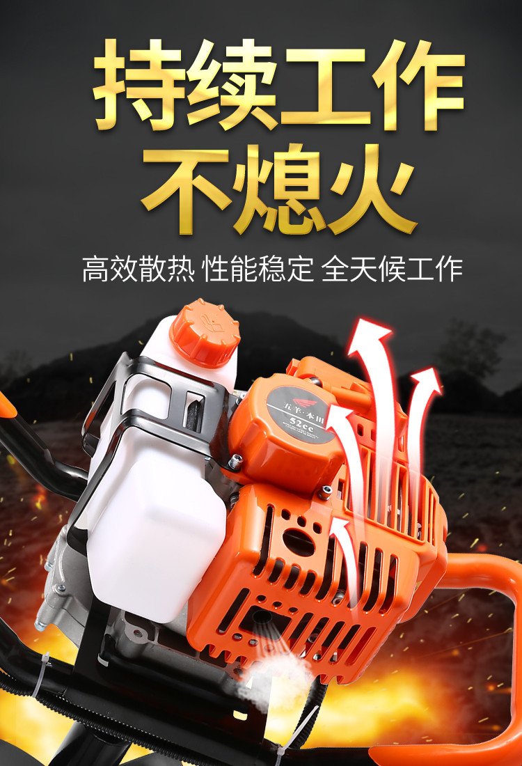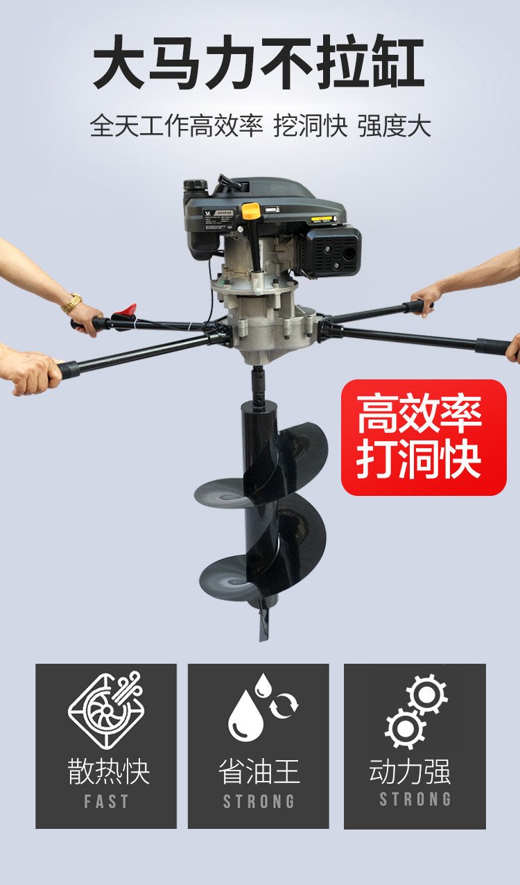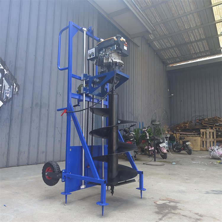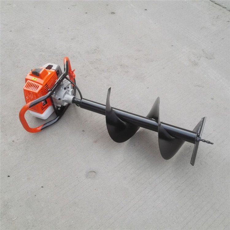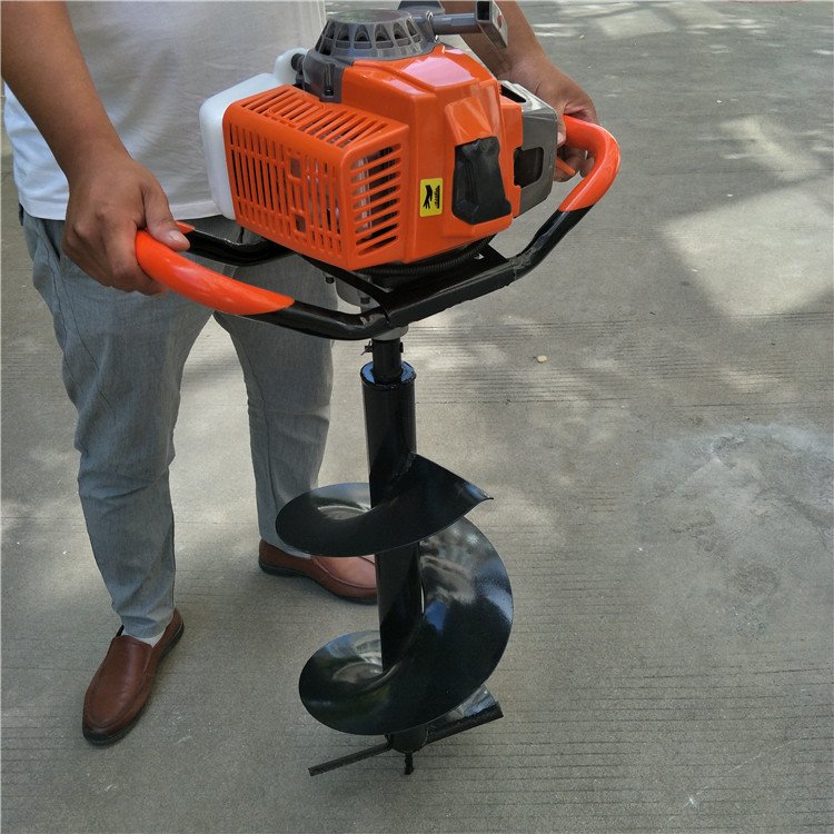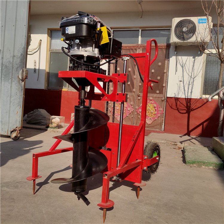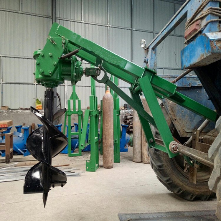 A tree-planting machine, a single man operating a utility pole and a hand-held petrol holer