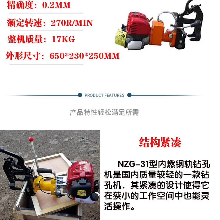 Inner-fired steel-track drills, rail drills, gas hollow vents, lightweight, easy to operate