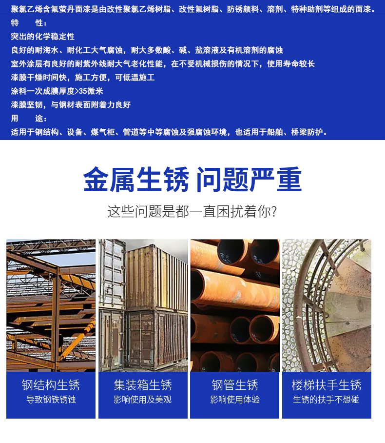 Polyvinyl chloride with fluorofluorine paints, high resistance to corrosive double-assembly coatings