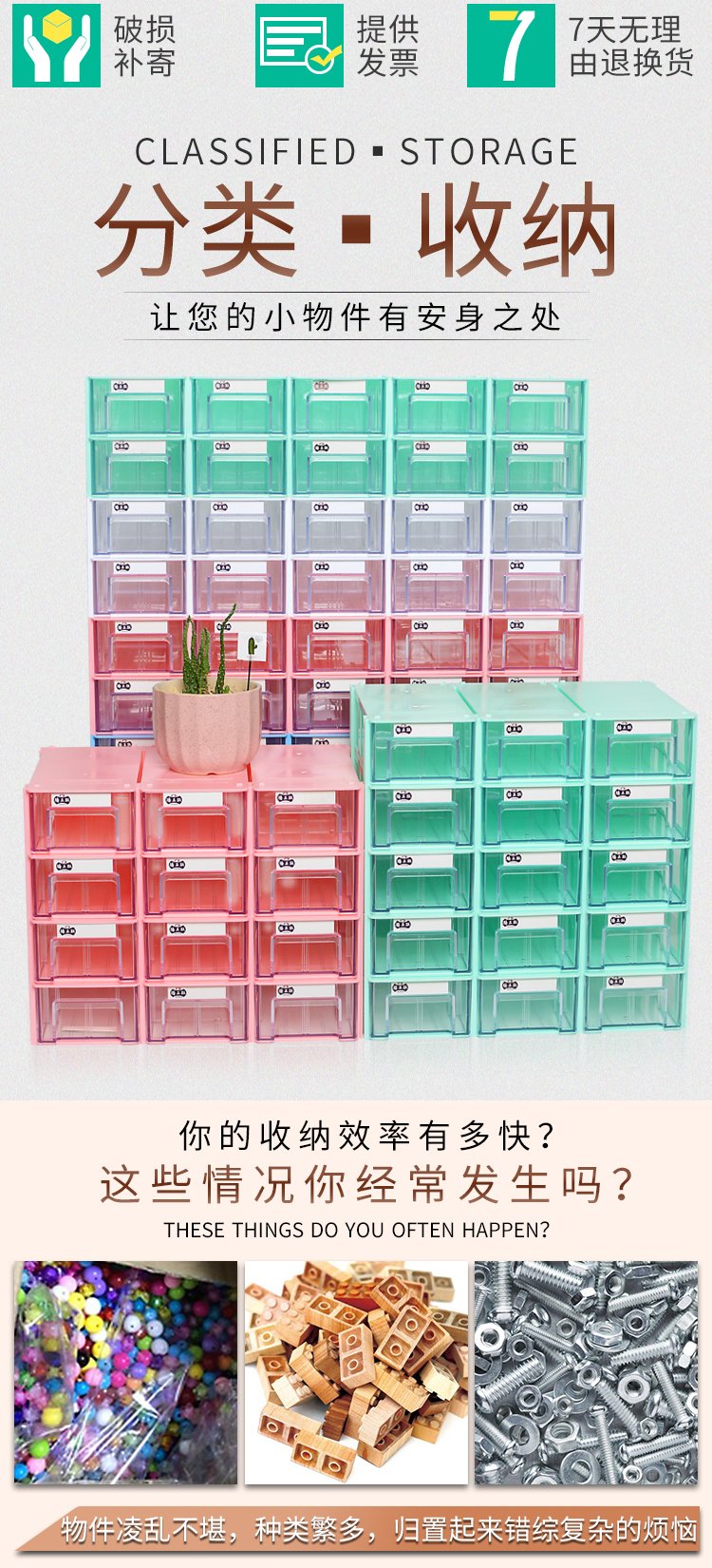 Plug-in box plastic tool box for tumble-trip drawer parts