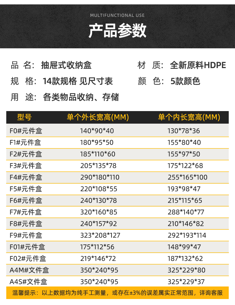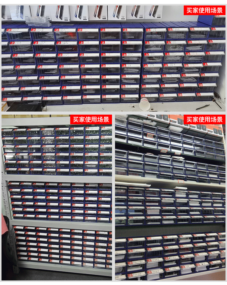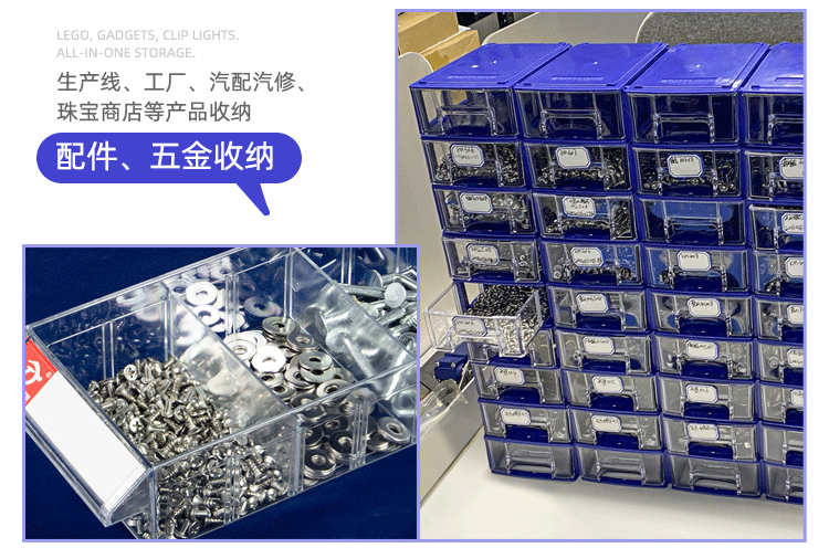 A toolbox for basket drawers with plastic wrapping boxes for screwdrivers