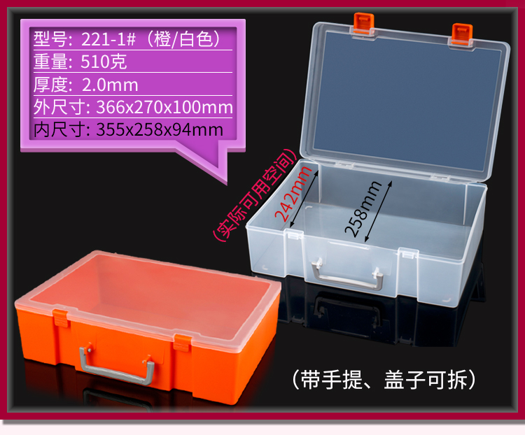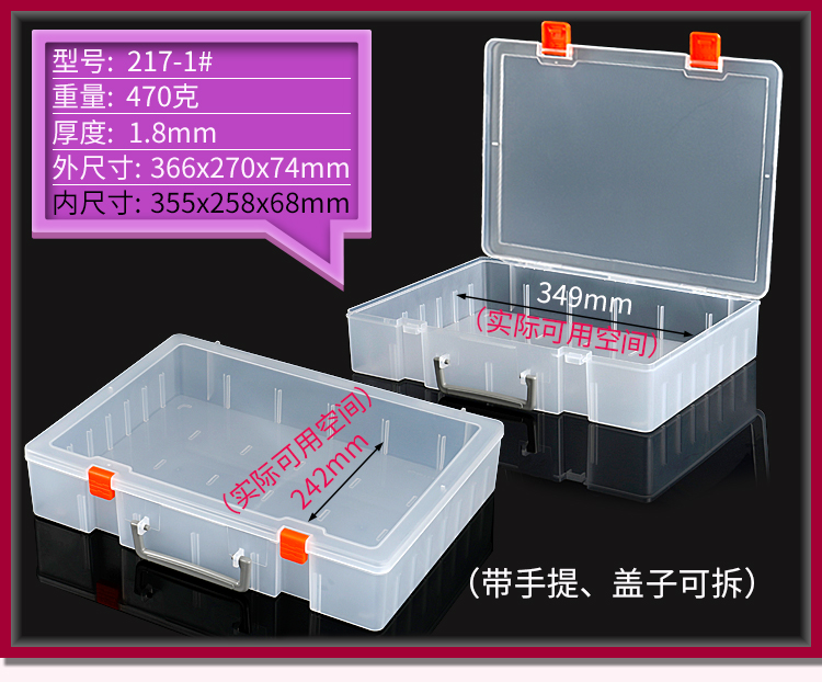 A box of super-sized toy collections with hand-held hardware tools and a box of transparent hard pp plastics