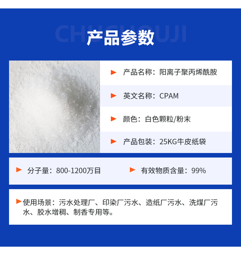 Cpam condensant anion polypropyleneamide sewage treatment sludge dehydration, coal washing, and soil