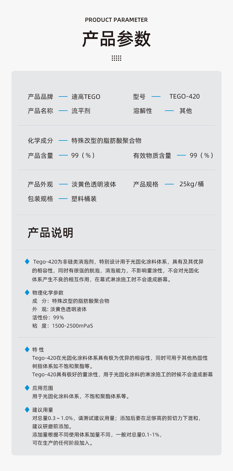 Supply of tego 420 digorts for photoconsolidated polyester system fluid 420