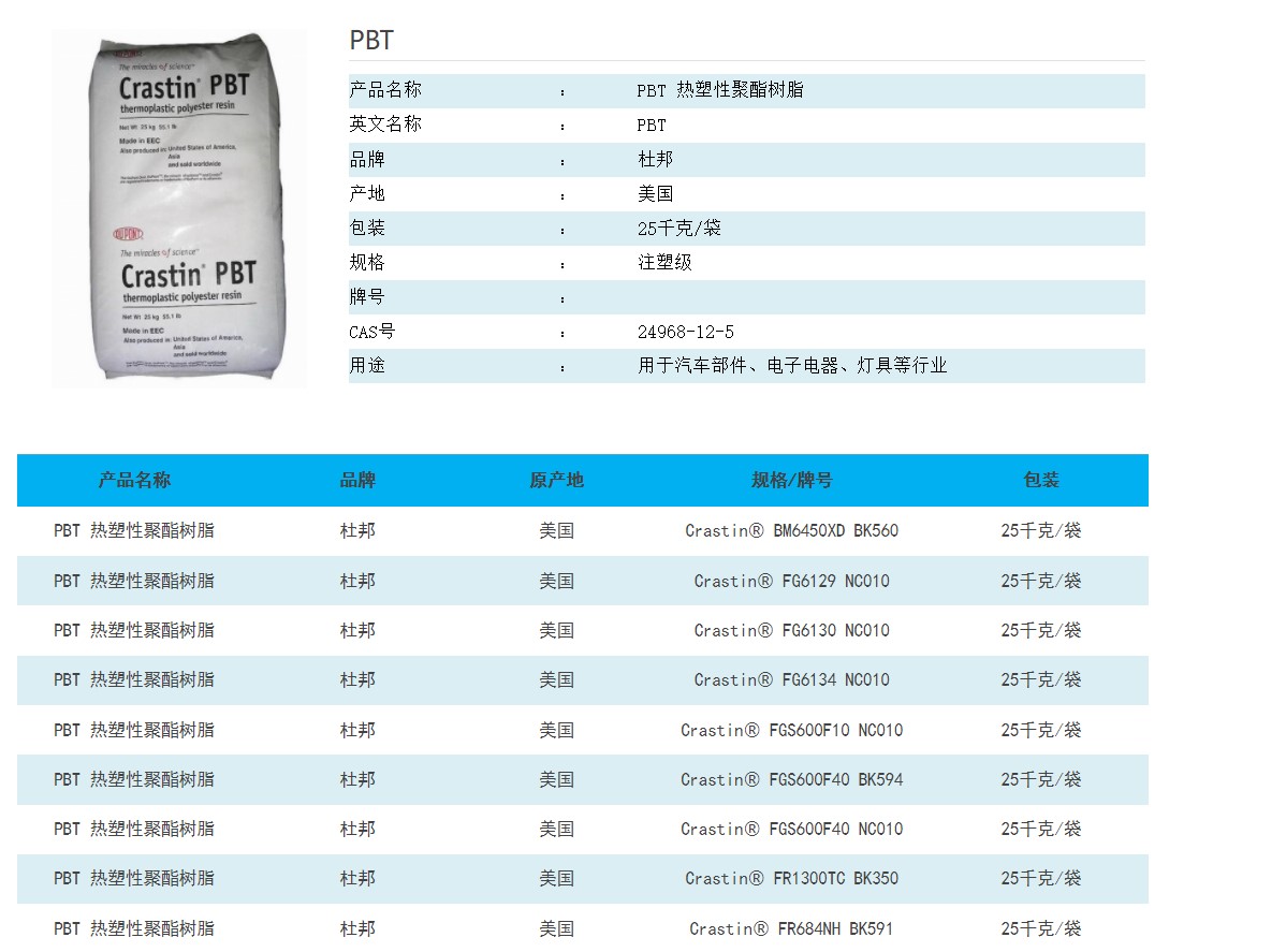 U. S. Pbt polyester crastin sk645fr nc010, polybiphenyl diphenylate