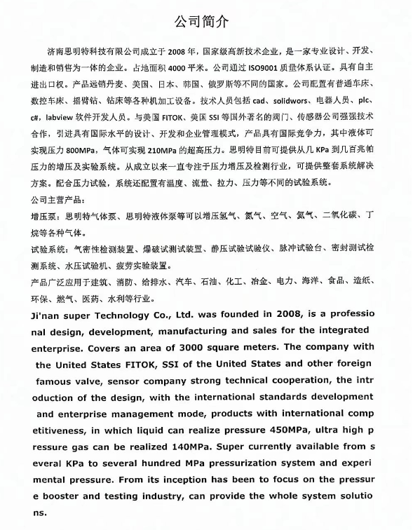 Development, production, sales, import and export business of hydraulic and pneumatic equipment, technical development of computer software, technical services, and other projects that are not prohibited or require business licenses according to laws, reg
