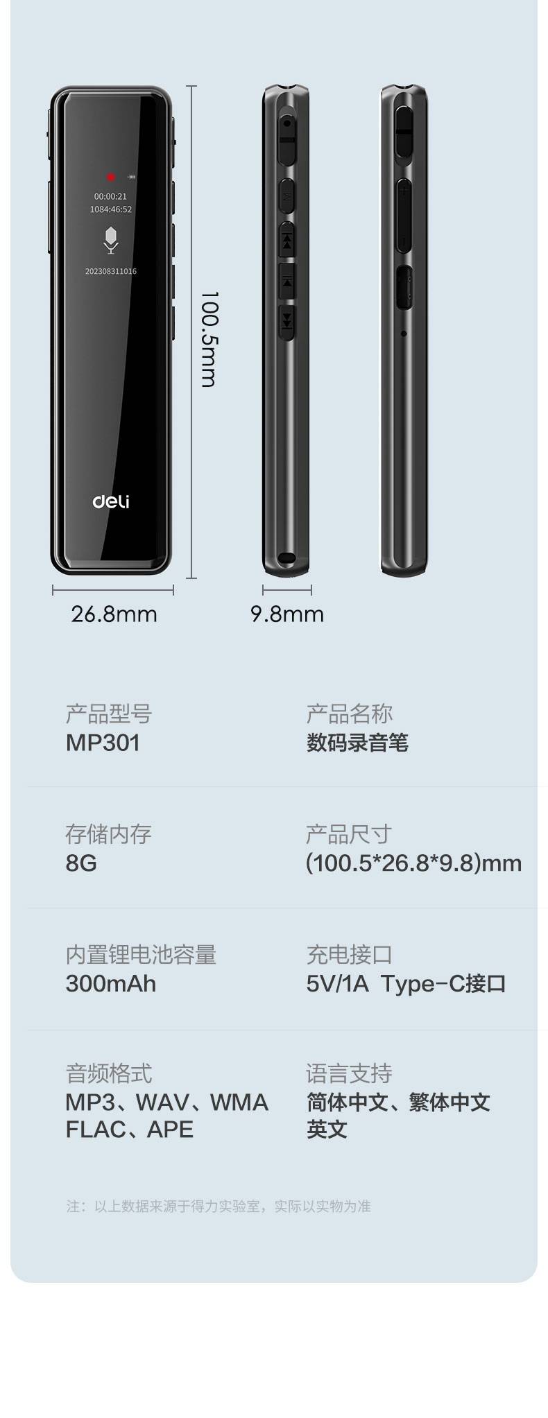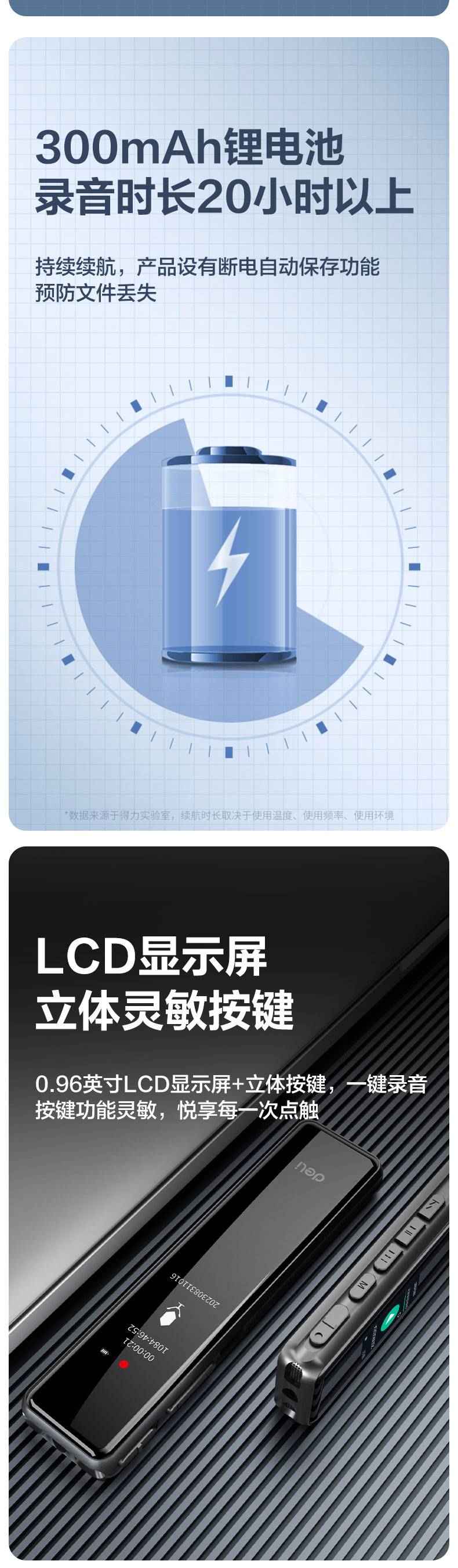 Powerful digital recording pen (black) supporting sound control mode, segment recording, time record