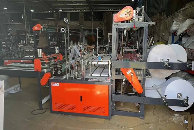 A plastic bag machine, double-story, four-line, supermarket bags can be made