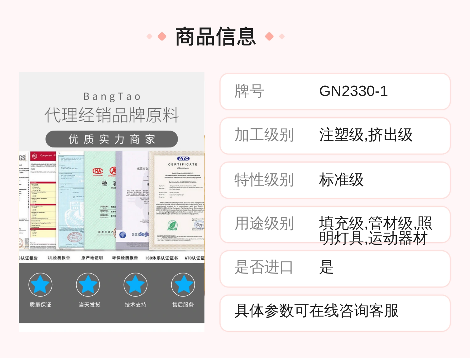 价格:向品在花生壳b2b外贸信息平台的展示标价,县体的成文价情可能因向品参加活动考情况发生变化,也可能随者购买数量不同或所选规信不同而发生变化,如用户与向家线下达成协议,以线下协议的结算价格为准,如用户在花生壳b2b外贸信息平台上完成线上购买,则最终以订单结算页价格为准。