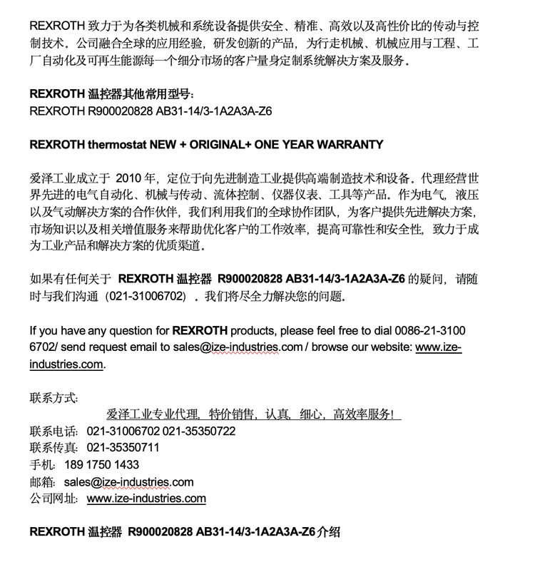 Rexroth temperature control r9000020828 ab31-14/3-1a2a3a-z6