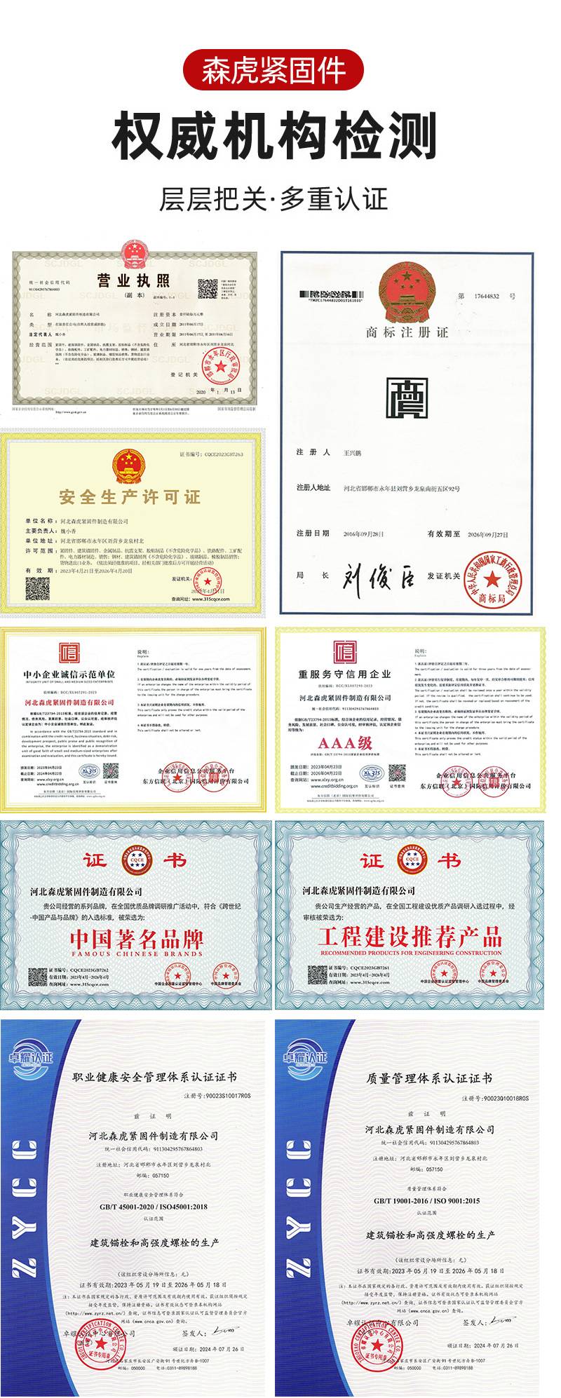 Hebei Senhu Fastener Manufacturing Co., Ltd企业会员No.1Year