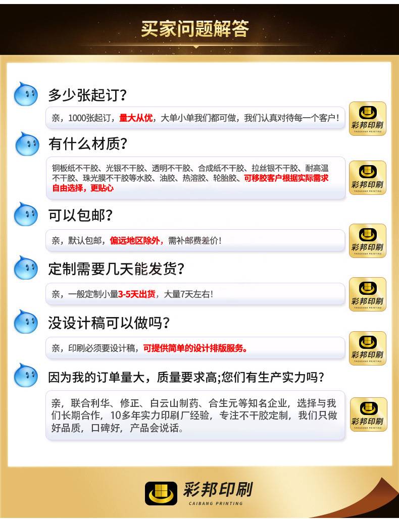 The product sticker is made of non-dry glue tags, brand logo anti-false stickers, professional print