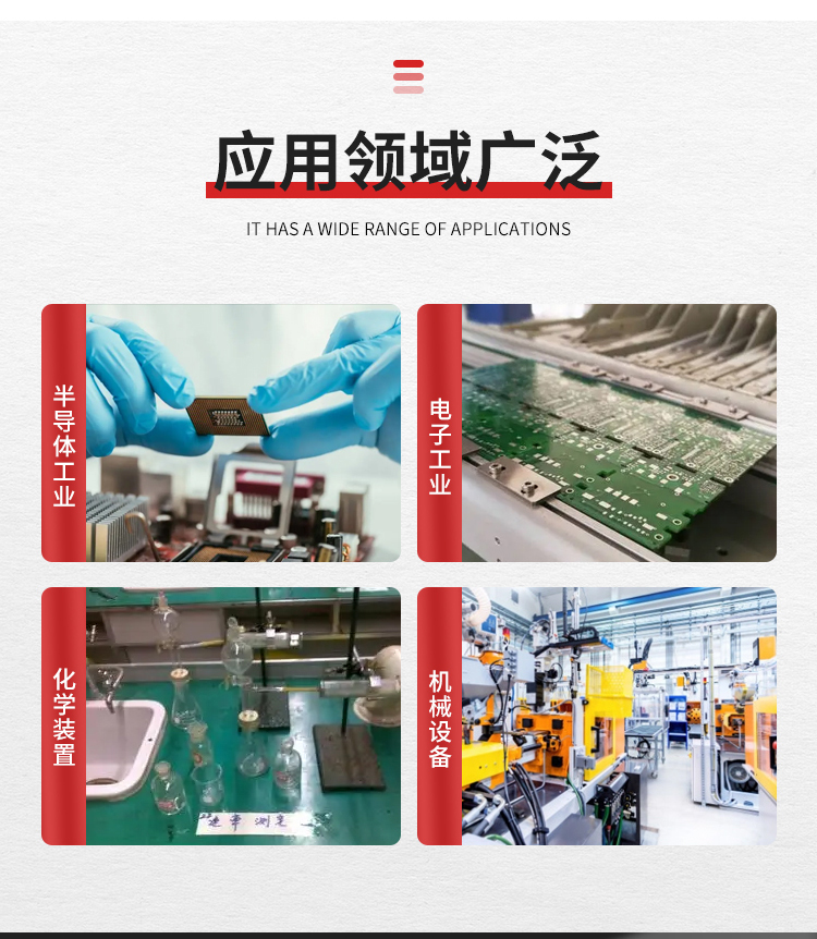Semiconductor industry, electronics industry, chemical devices, medical devices