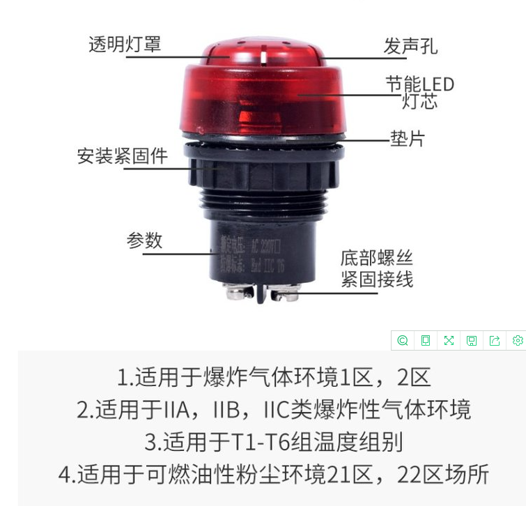 Ba8030 blast-proof flash beeper ac220v380v24v opening 30mm